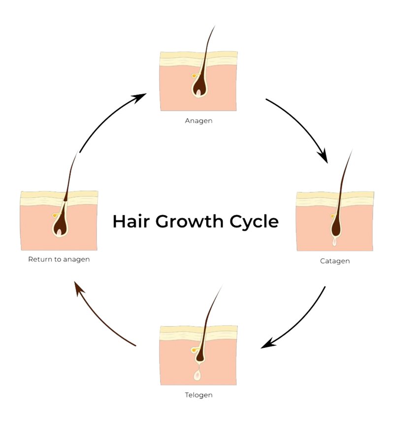 Il ciclo di crescita dei capelli si compone di quattro fasi distinte: anagen, catagen, telogen ed exogen.